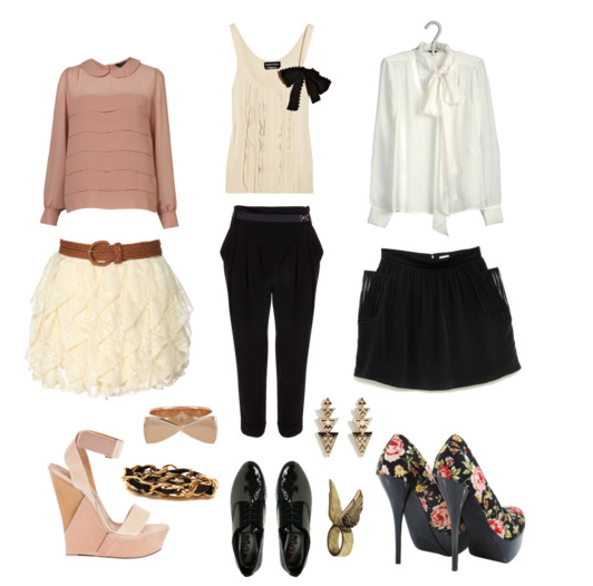 – Pour le dernier ensemble, j'ai joué avec le noir et le blanc, les couleurs du clip. Une jolie blouse lavalière et une jupe avec des poches soufflées. Le tout agrémenté de talons-haut que je ne pourrais pas porter, mais que je trouve SI beaux.
