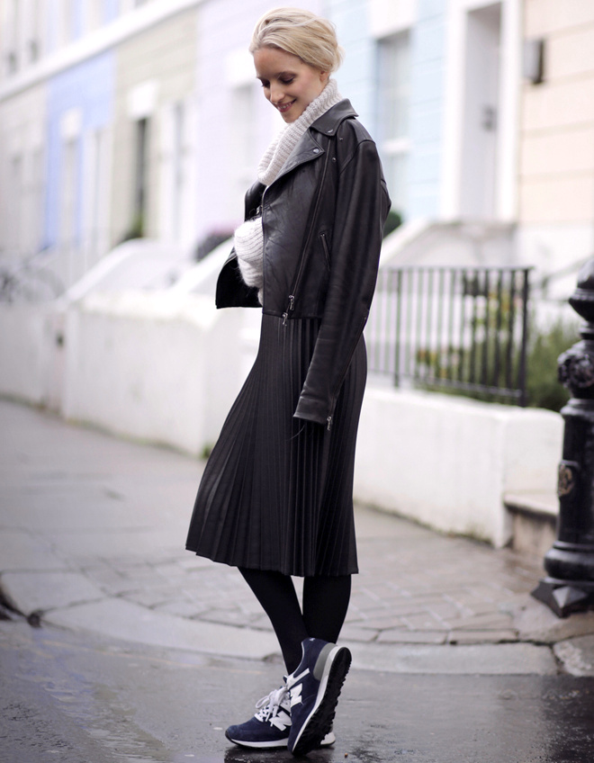 Les talons plats sont confortables et super tendance. En plus, comme vous êtes grande, les souliers plats ne tasseront pas votre silhouette. Je tripe fort sur la tendance des souliers de course : outre les classiques Converse, il y a les New Balance qui sont chouettes!
