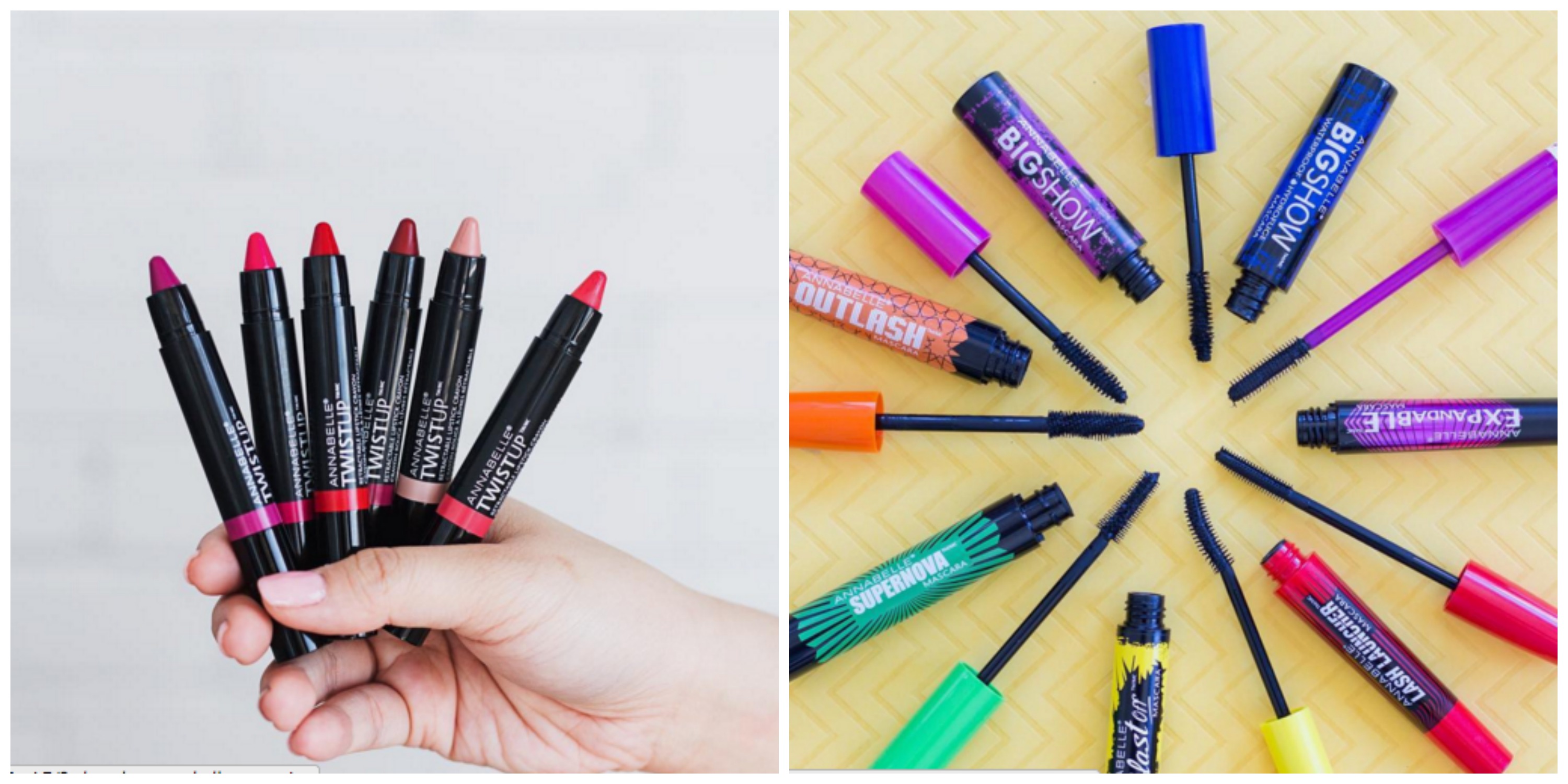 Heureusement, j'ai eu la chance de choisir cinq couleurs différentes parmi les produits Annabelle, gracieusement offerts à TPL. FYI, c'est une compagnie montréalaise qui offre des produits non testés sur les animaux. Les crayons à lèvres rétractables TwistUP Metallic que j'ai testés sont abordables, se détaillant à 9,95 $ chacun, et se trouvent dans pas mal toutes les pharmacies.