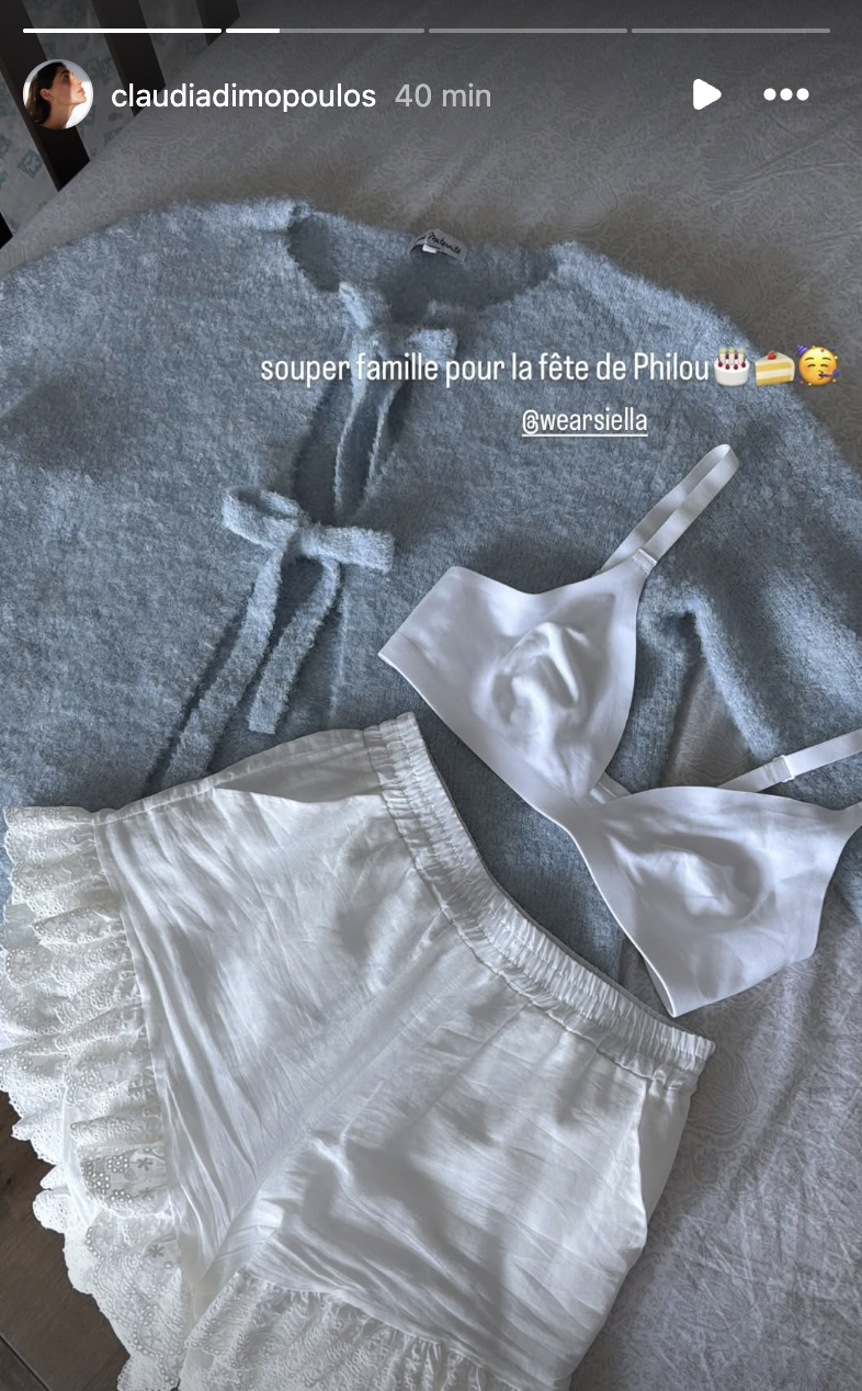 Sur Instagram, Claudia a dévoilé une tenue des plus stylées: short blanc fluide, brassière immaculée et petit haut en laine rehaussé de boucles en guise de fermeture, un mix parfait entre simplicité et sophistication.