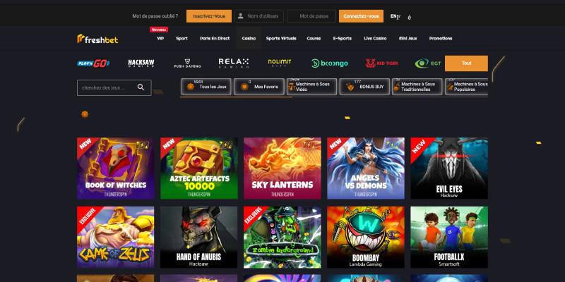Avec une ludothèque de plus de 5 000 jeux, FreshBet propose une vaste gamme de machines à sous, y compris des titres populaires tels que Book of Dead et Sweet Bonanza